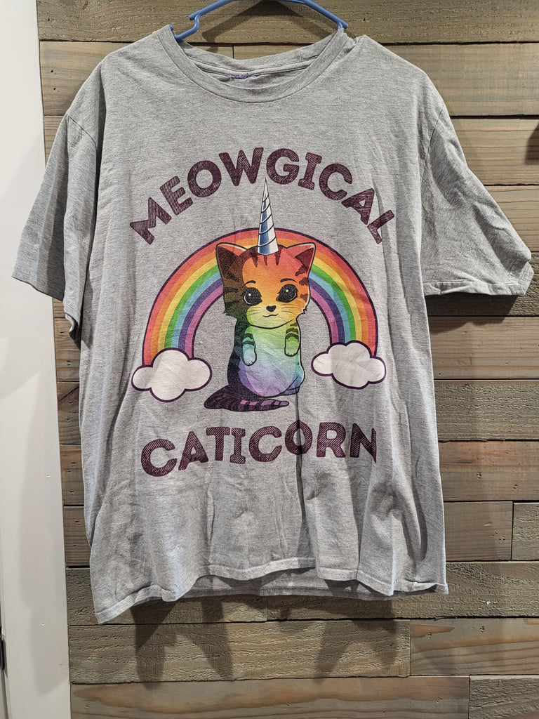 Meowgical Caticorn Gray Cat Unicorn T-Shirt Unisex Large / XL (see details)