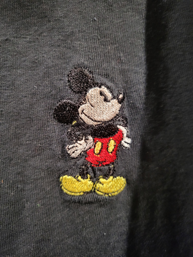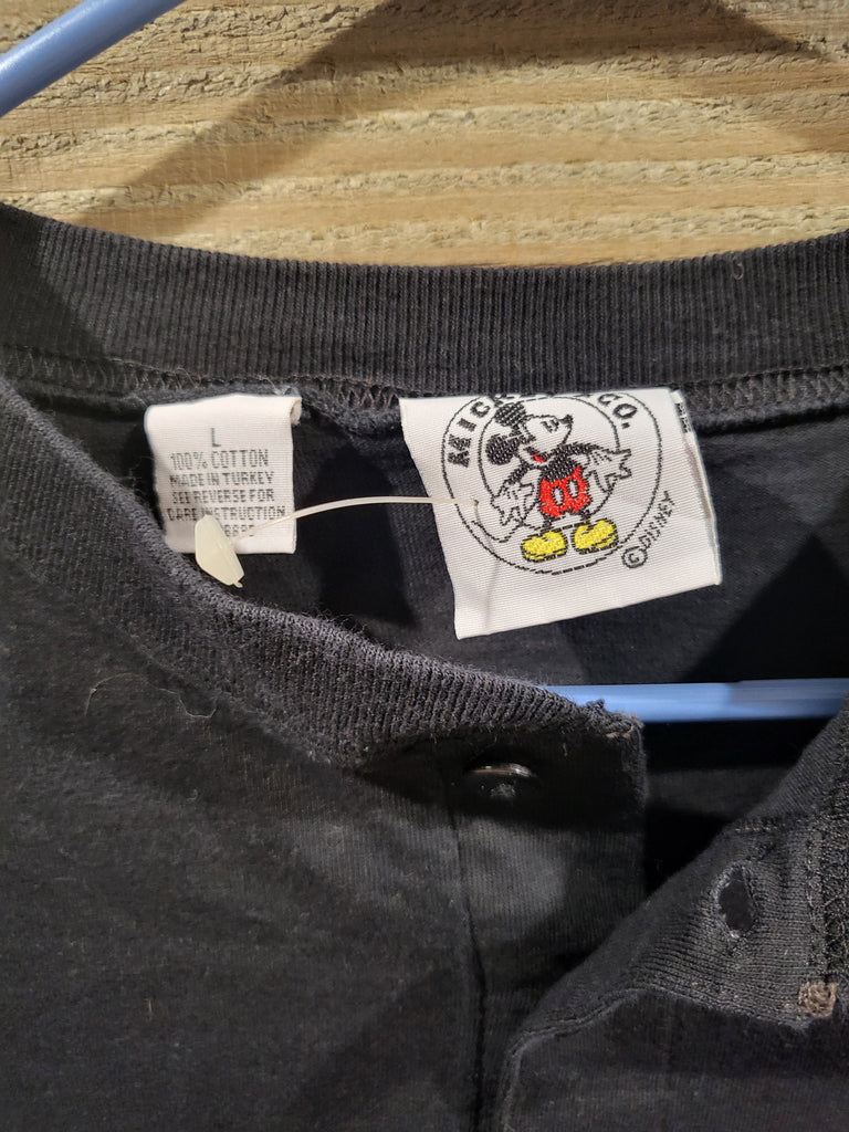 Mickey & Co Black Long Sleeve L Henley Shirt W/ Embroidered Disney Mickey Mouse Patch