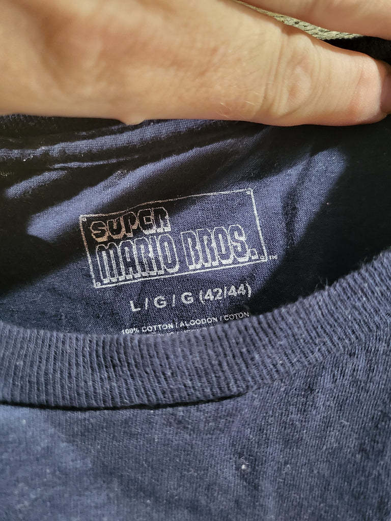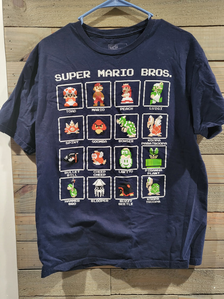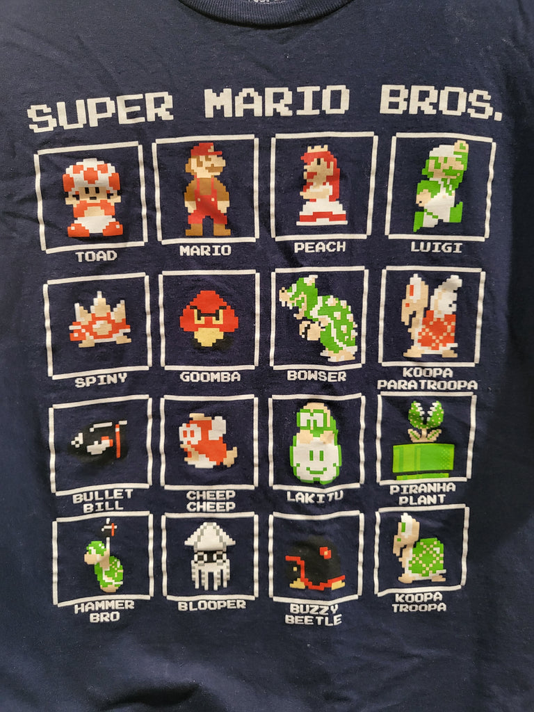 Super Mario Bros Blue Pixel Grid Characters Table Design XL Unisex Gamers T-Shirt