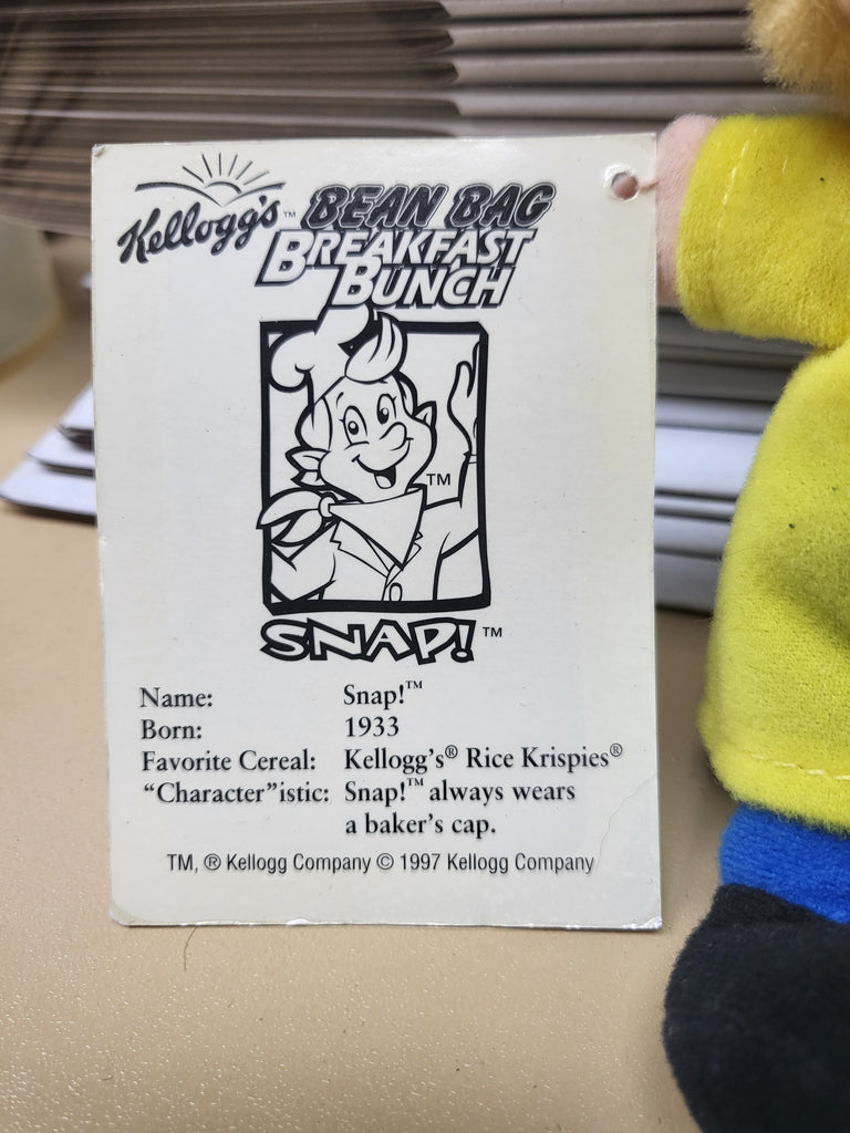 1997 Kellogg's Bean Bag Breakfast Bunch Rice Krispies Snap 8" Plush Doll NWT