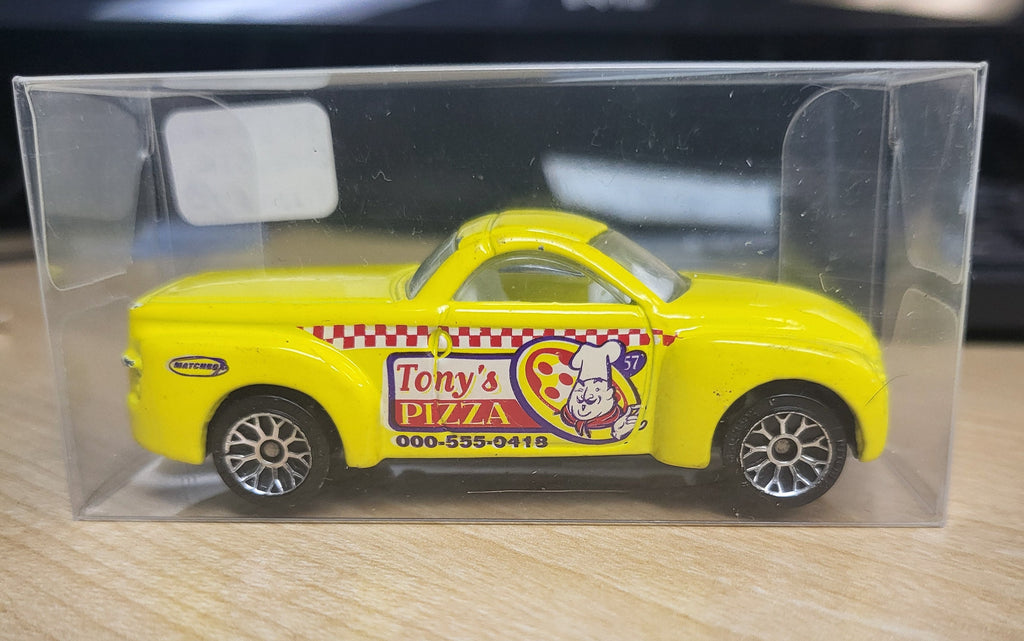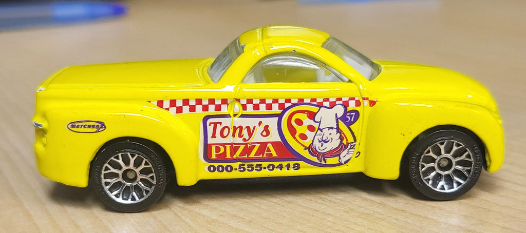 2001 Matchbox Chevrolet SSR Tony's Pizza Yellow Die-Cast Hero City Delivery Car w/case